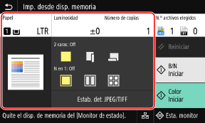 En el panel de control, pulse [Imp. desde disp. de mem.] en la pantalla [Inicio].