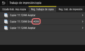 Si no se puede imprimir, no se pueden enviar o recibir datos escaneados o faxes, o se produce algún otro error, aparece un código de error (número de tres dígitos que empieza por "#") en el informe o en el registro de trabajos.