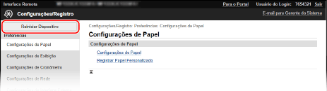 Ao alterar as configurações usando o painel de operação ou a UI Remota, você pode reiniciar a máquina usando o botão liga / desliga ou a UI Remota.