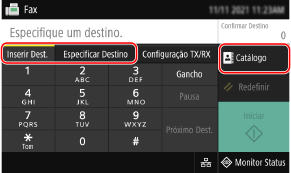 Especifique o destino na guia [Inserir Dest.], guia [Especificar Destino] ou [Catálogo].