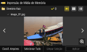 Para selecionar todos os arquivos exibidos, pressione [Selecionar Tudo] na parte inferior da tela. Se houver arquivos PDF e arquivos de imagem (arquivos JPEG ou TIFF), será exibida uma tela para selecionar o tipo de arquivo. Use esta tela para selecionar o tipo de arquivo que deseja imprimir.