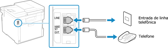 Ao conectar um telefone com função de fax, não se esqueça de desabilitar a configuração de recebimento automático de fax no telefone.