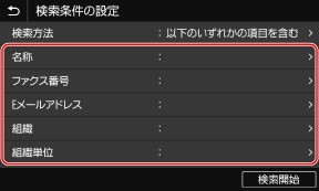 LDAPサーバーでユーザー情報が管理されている場合は、操作パネルのスキャン/ファクスの画面からその情報を検索して、宛先に指定できます。