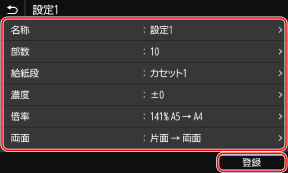 スキャン/ファクス/コピー機能で、目的に応じた設定や、覚えておきたい設定を「よく使う設定」として登録します。