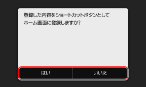 [いいえ]を選択すると、「よく使う設定」のみが登録されます。あとから[ホーム]画面にショートカットボタンを登録することもできます。