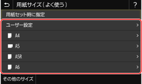[その他のサイズ]を押し、表示された一覧から用紙サイズを選択します。