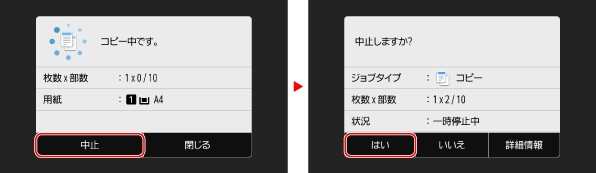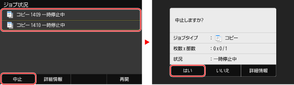 ジョブの一覧画面が表示された場合は、中止するジョブを選択し、[中止]