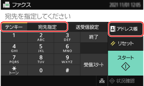 [テンキー]タブ/[宛先指定]タブ/[アドレス帳]で、宛先を指定する