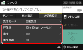 宛先の指定テンキーでファクス番号を入力するか、登録されている宛先を選択すると、相手に電話がかかります。