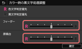[フィーダー]または[原稿台]で、色文字と黒文字のどちらの再現を優先するか調整する