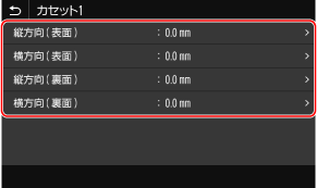給紙部とプリント面(オモテ面/ウラ面)ごとに、ずらす方向と幅を指定します。