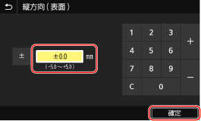 調整する数値を入力し、[確定]を押す