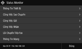 Thay Đổi Hiển Thị Màn HìnhBạn có thể thay đổi hiển thị của bảng thao tác, chẳng hạn như bằng cách thay đổi ngôn ngữ hiển thị và đơn vị, và hiện hoặc ẩn tin nhắn. [Cài Đặt Hiển Thị] Bạn có thể đảo ngược màu màn hình và điều chỉnh độ sáng để giúp màn hình dễ xem hơn. [Khả Năng Truy Cập] Xóa Cài Đặt Tự ĐộngTheo mặc định, nếu không có thao tác nào được thực hiện sau một khoảng thời gian nhất định, các cài đặt đang được cấu hình trên màn hình sẽ bị xóa và màn hình [Home] được hiển thị. Bạn có thể thay đổi thời gian cho đến khi các cài đặt bị xóa và màn hình hiển thị sau đó. [Tự Động Đặt Lại Giờ] [Ch.Năng Sau Khi TĐộng Đặt Lại] |