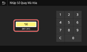 Khi chỉ định điểm đích trên màn hình quét hoặc fax, ngoài việc sử dụng danh sách điểm đích, bạn cũng có thể nhập số Quay Số Mã Hóa để chỉ định điểm đích.