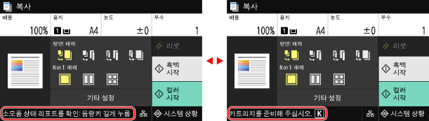 화면 하단에 메시지가 나타나는 경우 메시지가 너무 길어서 한 번에 표시할 수 없는 경우 여러 부분으로 분리되어 교대로 표시될 수 있습니다. ![]() |