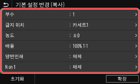 조작 패널을 사용하여 호출된 스캔, 복사, 기타 기능에 대한 기본 설정을 변경할 수 있습니다.