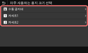 [자주 사용하는 용지 크기 선택] 화면이 표시됩니다.