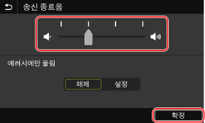 팩스 전송이 완료되었음을 알리는 소리의 볼륨을 조정합니다.