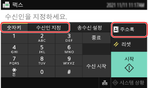 대상 지정숫자 키로 팩스 번호를 입력하거나 등록된 대상을 선택하여 전화를 겁니다.