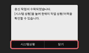 전송 상태와 로그를 보려면 [시스템상황]을 누릅니다.
