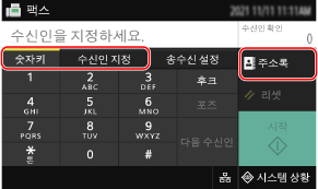 대상 지정숫자 키로 팩스 번호를 입력하거나 등록된 대상을 선택합니다.