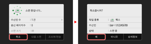 화면 지시에 따라 팩스 전송을 취소할 수 있습니다.