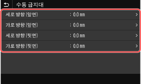 각 용지 공급원과 인쇄면(앞면과 뒷면)에 대해 조정 방향과 너비를 지정할 수 있습니다.