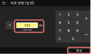 +와 -를 사용하여 조정 방향을 지정하고, 0.1 mm 단위로 조정 너비를 지정합니다.
