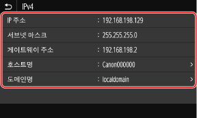 IPv4 주소 및 IPv6 주소와 같이 기기에 설정된 IP 주소의 설정을 볼 수 있습니다.