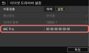 기기가 유선 LAN에 연결된 경우 기기에 설정된 MAC 주소를 볼 수 있습니다.