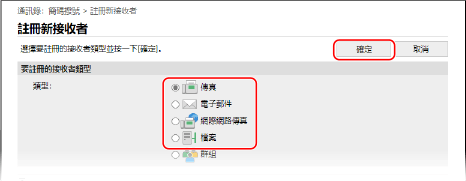 3 | 在 [主機名稱] 中,輸入電腦的名稱或 IP 位址。 共用資料夾 輸入共用資料夾所在的電腦名稱或 IP 位址。 FTP 伺服器 輸入 FTP 伺服器的 IP 位址。 * 使用 DNS 伺服器時,您可以輸入主機名稱或 FQDN,而不是電腦名稱或 IP 位址。 |