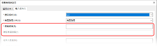 在 [輸入收件人] 索引標籤上,輸入傳真號碼。如果可以輸入 [確認傳真號碼],請輸入相同的傳真號碼。