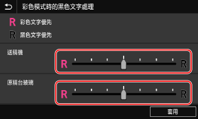 在 [送稿機] 或 [原稿台玻璃] 中進行調整,優先再現彩色文字或黑色文字。
