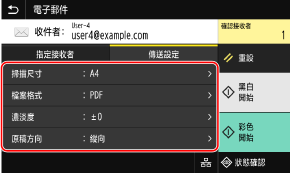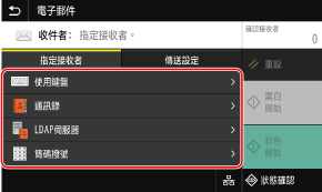如果傳送時的目的地由於傳送功能的驗證設定而受到限制,則您無法指定其他目的地。如需詳細資訊,請聯絡管理員。