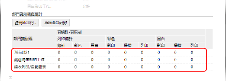 對於要重設計數的部門 ID,按一下 [清除計數]