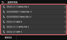 搜尋要連線的無線區域網路路由器(存取點),然後輸入網路金鑰。