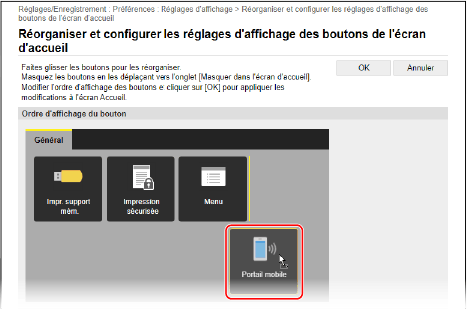 Pour changer l'ordre d'affichage en faisant glisser les boutons, cliquez sur [Modifier dans la vue Boutons].
