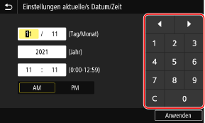 Tippen Sie auf die Zahlen auf den Zahlentasten, um einen Wert einzugeben.