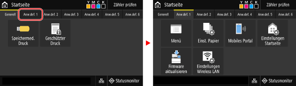 Wenn Sie auf eine Registerkarte tippen, wird der Bildschirm für die ausgewählte Registerkarte angezeigt.