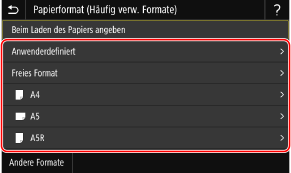Drücken Sie [Andere Formate], und wählen Sie das Papierformat aus der angezeigten Liste.