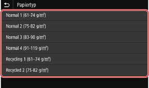 Wählen Sie den zu registrierenden Papiertyp.