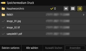 Bildschirm für die Auswahl von Dateien auf einem USB-Speichergerät