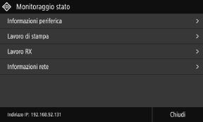Questa schermata viene visualizzata quando si preme [Monitor. stato] sulla schermata [Schermata princip.] e da altre posizioni.