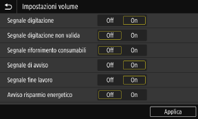 ) sul pannello operativo, viene visualizzata la schermata [Impostazioni volume].