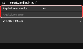 1 | Premere [Acquisizione automatica]. Viene visualizzata la schermata [Impostaz. indirizzo IP (Acquis. autom.)]. |