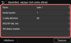 Selecteer de instel-items die u wilt wijzigen, en wijzig de standaardinstellingen.