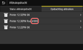 Als u niet kunt afdrukken, als u een I-Fax niet kunt ontvangen, of als er een andere fout optreedt, verschijnt er een storingscode (drie cijfers, eerst een ‘#’) in het opdrachtlogboek.