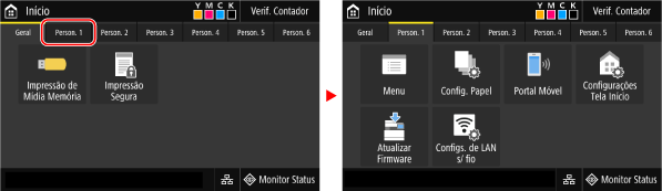 Toque no ecrã e deslize o dedo. O ecrã move-se na direção em que deslizou o dedo. Por exemplo, o ecrã [Início] move-se para o separador na direção em que deslizou o dedo.