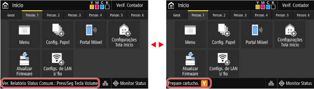 ] no painel de controlo. Por predefinição, o ecrã [Início] é apresentado depois de a alimentação ser ligada, imediatamente depois de o ecrã de arranque encerrar e imediatamente depois de iniciar sessão. Ecrã [Início]