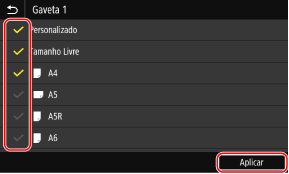 Os tamanhos de papel sem a caixa de verificação assinalada não são apresentados no ecrã de definições de papel.